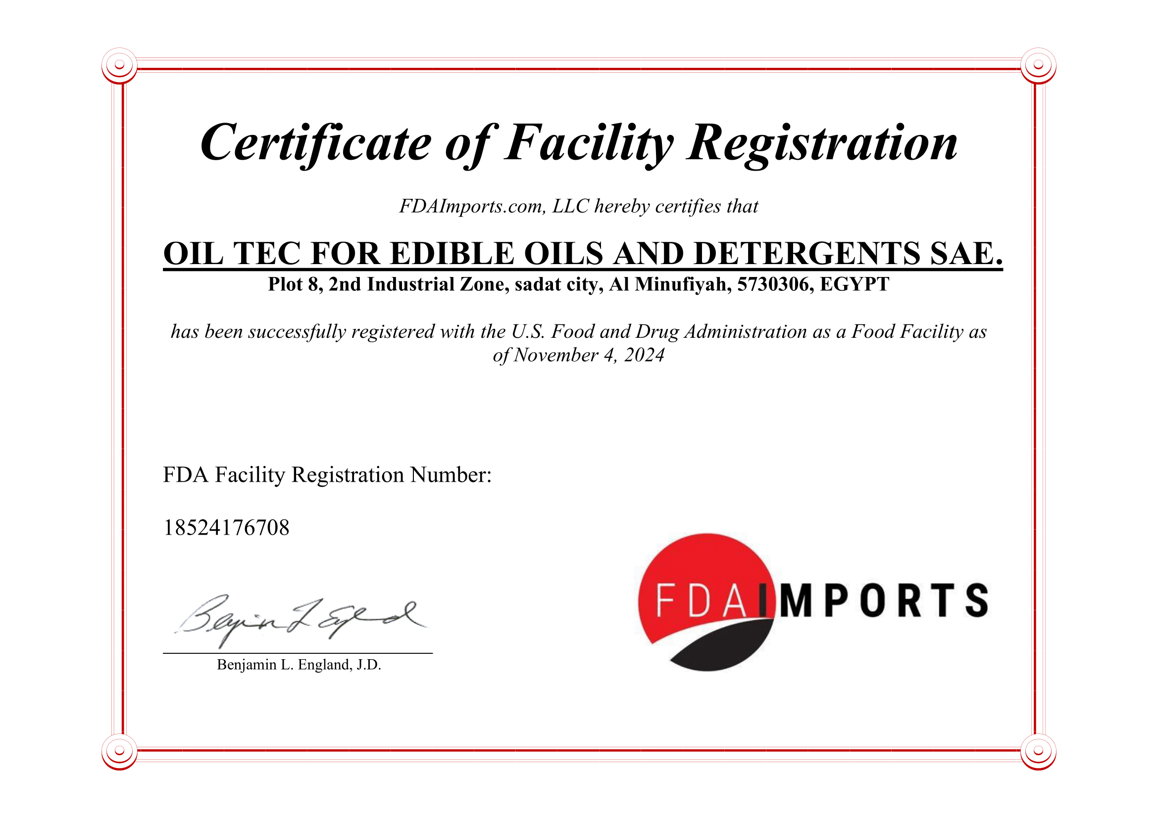 Oil Tec operates under full compliance with